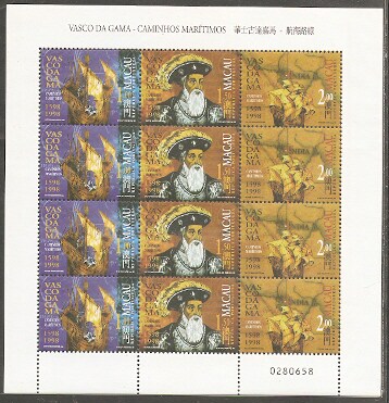 1998澳门邮票,华士古达伽马-航海路线(错版/1598),小版张。