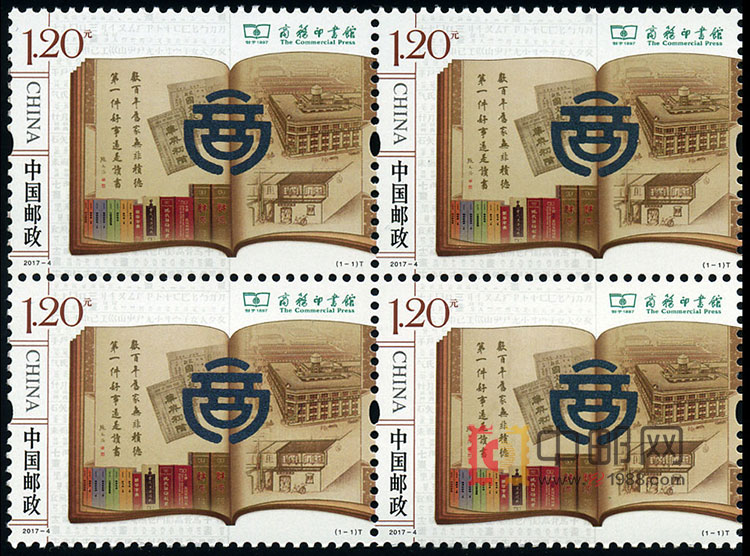 中国邮政定于2017年2月27日发行《商务印书馆》特种邮票一套1枚,邮票面值为1.20元。
