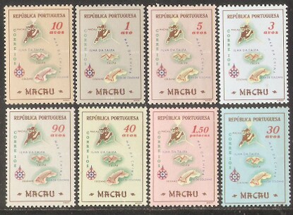 1956澳门邮票,澳门地图,8全。
