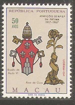1967澳门邮票,圣母玛利亚显现花地玛五十周年纪念,1全。