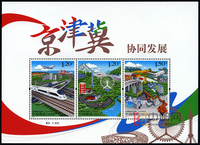 为纪念京津冀协同发展国家战略实施推动3周年,中国邮政将于3月9日发行《京津冀协同发展》特种邮票一套3枚,天津之眼摩天轮、天津港、空客总装线、高新区未来科技城等多个天津城市元素将在邮票中展现。