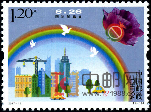 中国邮政定于2017年6月26日发行《国际禁毒日》纪念邮票一套1枚,邮票面值为1.20元。