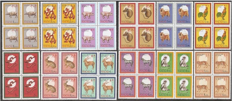 1984-1995澳门邮票,第一轮生肖,12全(方联)
