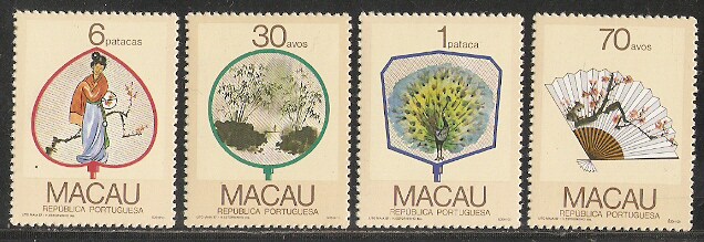1987澳门邮票,扇画,4全。