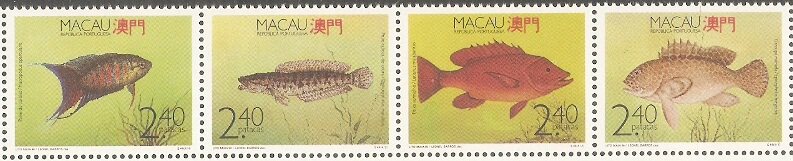 1990澳门邮票,鱼类,4全