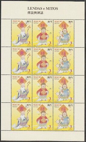 1994澳门邮票,传说与神话(第一组:福,禄,寿),小版张。