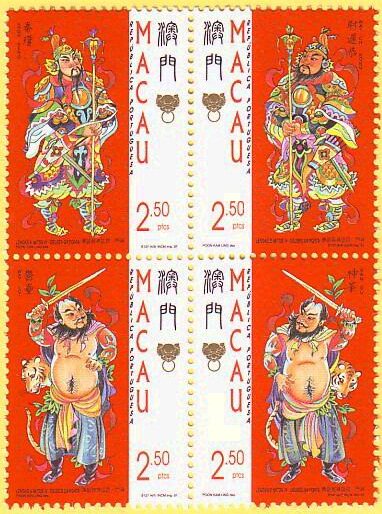 1997澳门邮票,传说与神话(第四组:门神),4全。