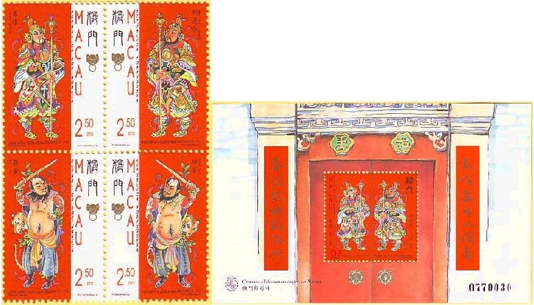 1997澳门邮票,传说与神话(第四组:门神),4全+小型张。
