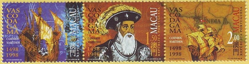 1998澳门邮票,华士古达伽马-航海路线(正版/1498),3全。