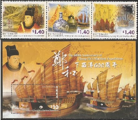 2005香港邮票,郑和下西洋600周年,3全+小型张。