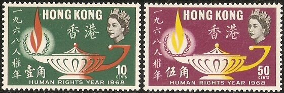 1968香港邮票,国际人权年,2全。