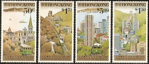1988香港邮票,山顶缆车百年,4全。
