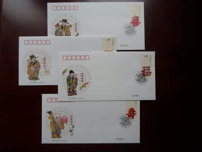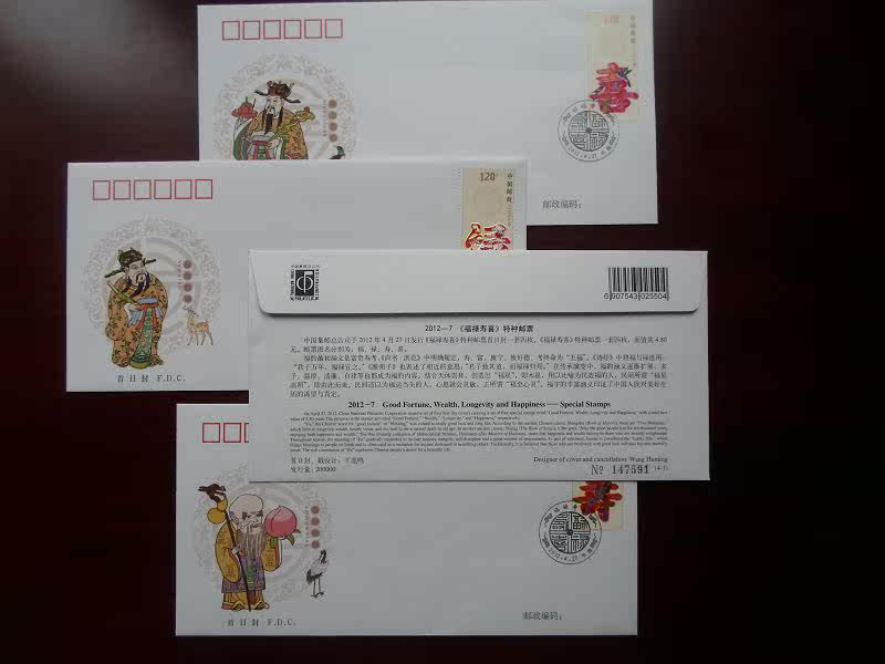 2012-7《福禄寿喜》邮票首日封 激光全息邮票首日封 4枚 总公司