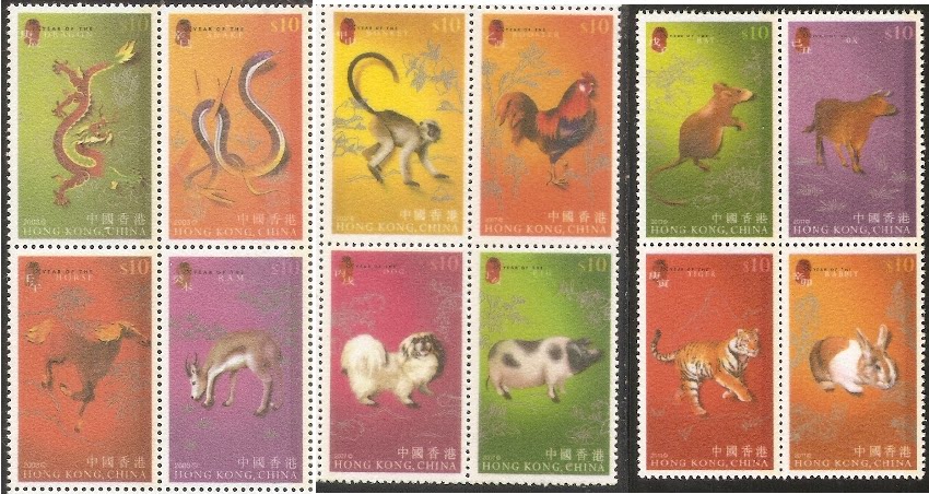 2003-2007-2011香港邮票,绒面生肖(12 生肖),12全。