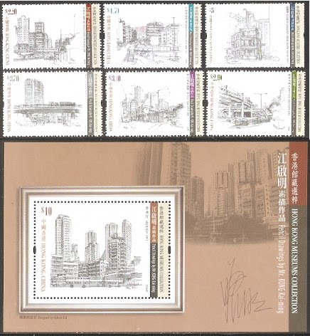 2016香港邮票,馆藏选粹-江启明素描作品,6全+小型张。
