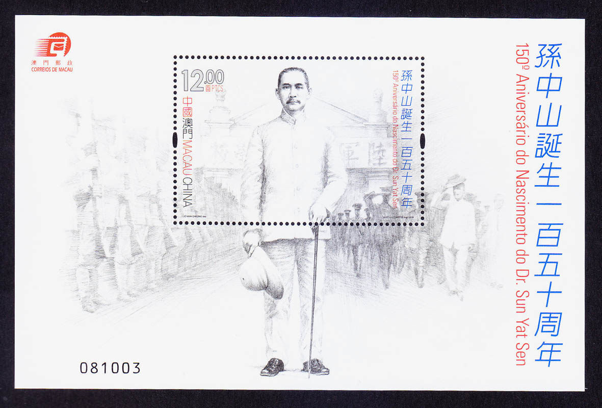 澳门邮票 2016年孙中山诞生150周年小型张 新