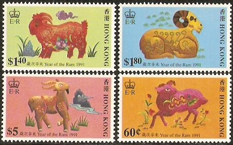 1991香港邮票,生肖羊,4全。