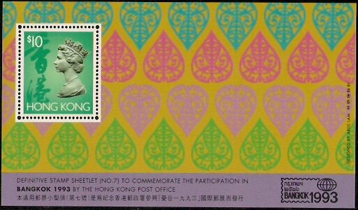 1993香港邮票,普通票第7号,小型张。
