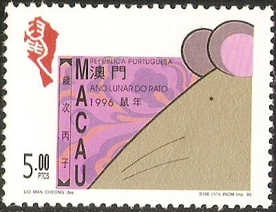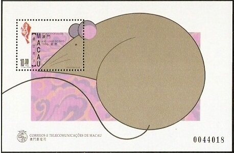 1996澳门邮票,生肖鼠,1全+型张