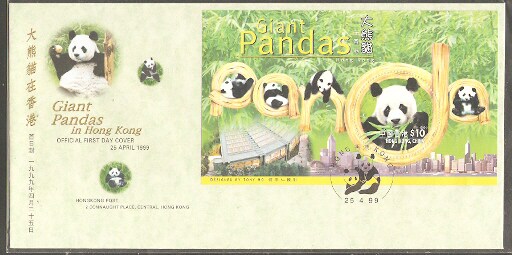 1999香港首日封,熊猫,每枚。