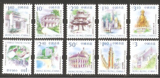 1999香港邮票,景点与名胜(卷筒票),10全。