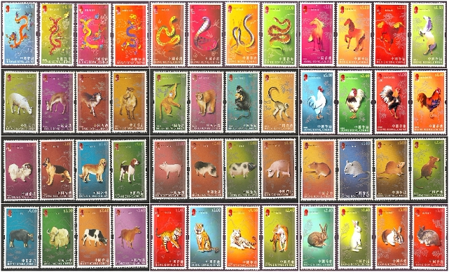 2000-2011香港邮票,第三轮生肖邮票(票),12全套。