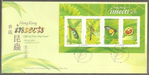 2000香港首日封,昆虫(小全张),每枚。