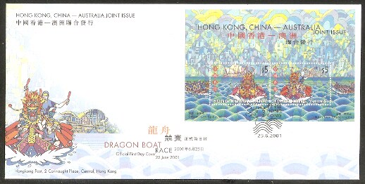 2001香港首日封,龙舟(与澳大利亚联合发行),每枚。
