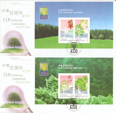 2001香港首日封,中电百年,2全。
