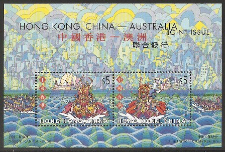 2001香港邮票,龙舟竞赛(与澳大利亚联合发行),小全张。