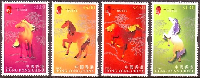 2002香港邮票,生肖马,4全。