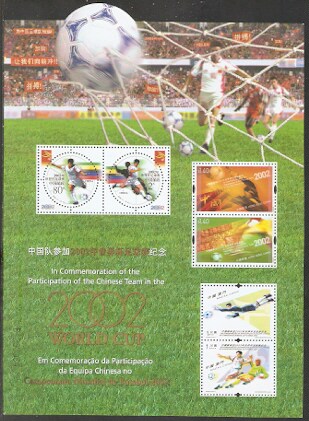 2002香港邮票,世界杯(中港澳联发),小版张。