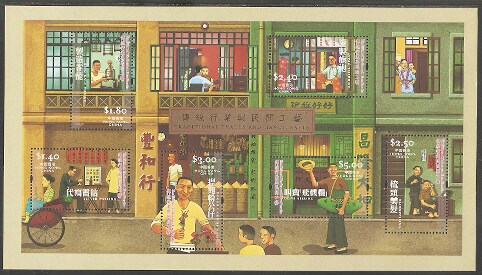 2003香港邮票,传统行业和民间工艺,小全张。