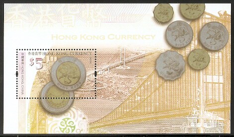 2004香港邮票,香港货币,小型张。