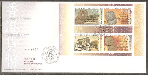 2004香港首日封,货币(小全张),每枚。