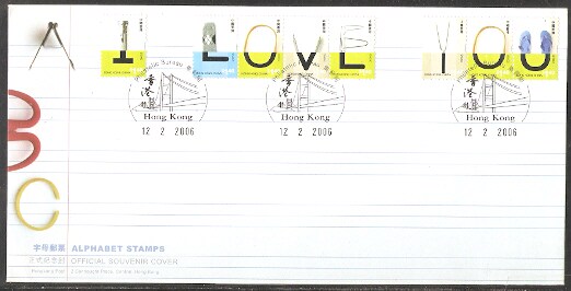 2005香港首日封,字母(我爱您),每枚。