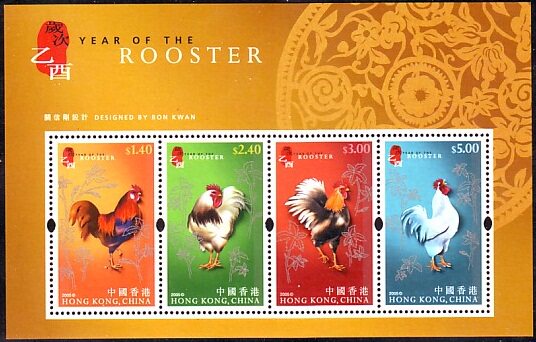 2005香港邮票,生肖鸡,小全张。