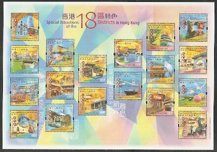 2006香港邮票,十八区特色,小版张。