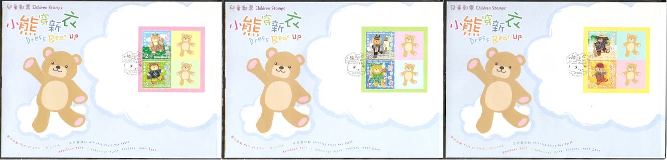 2006香港首日封,小熊穿新衣(小本票),3全。