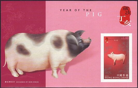 2007香港邮票,生肖猪,小型张。