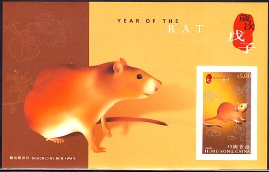 2008香港邮票,生肖鼠,小型张。