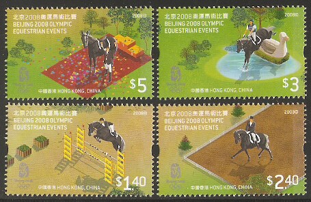 2008香港邮票,奥运-马术比赛,4全。