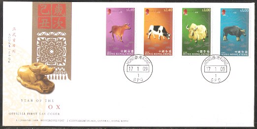 2009香港首日封,生肖牛,每枚。