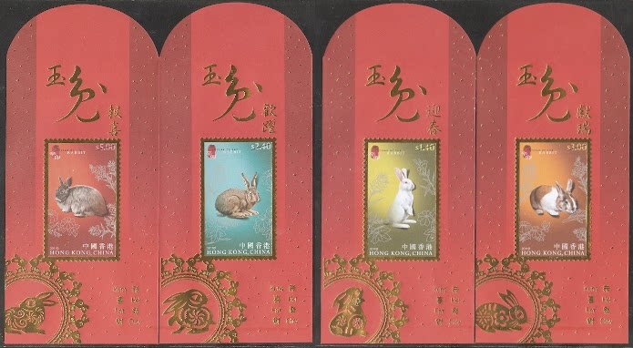 2011香港利是封(邮政局发行),生肖兔,4全。