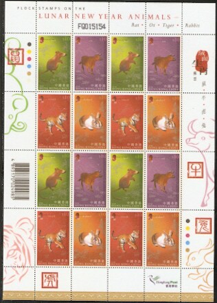2011香港邮票,生肖兔(绒面邮票/鼠牛虎兔),小版张。