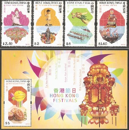 2012香港邮票,节日(端午/天后诞/佛诞/观音诞),4全+小型张。