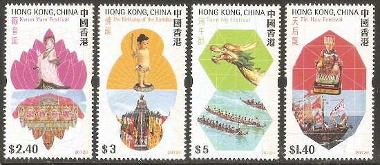 2012香港邮票,节日(端午节/天后诞/佛诞/观音诞),4全。