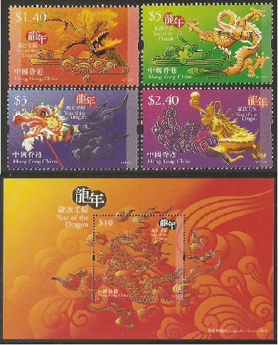 2012香港邮票,生肖龙,4全+小型张。