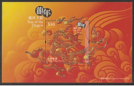 2012香港邮票,生肖龙,小型张。