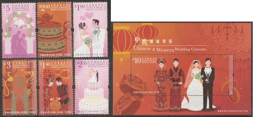 2013香港邮票,中西婚嫁习俗,6全+小型张。